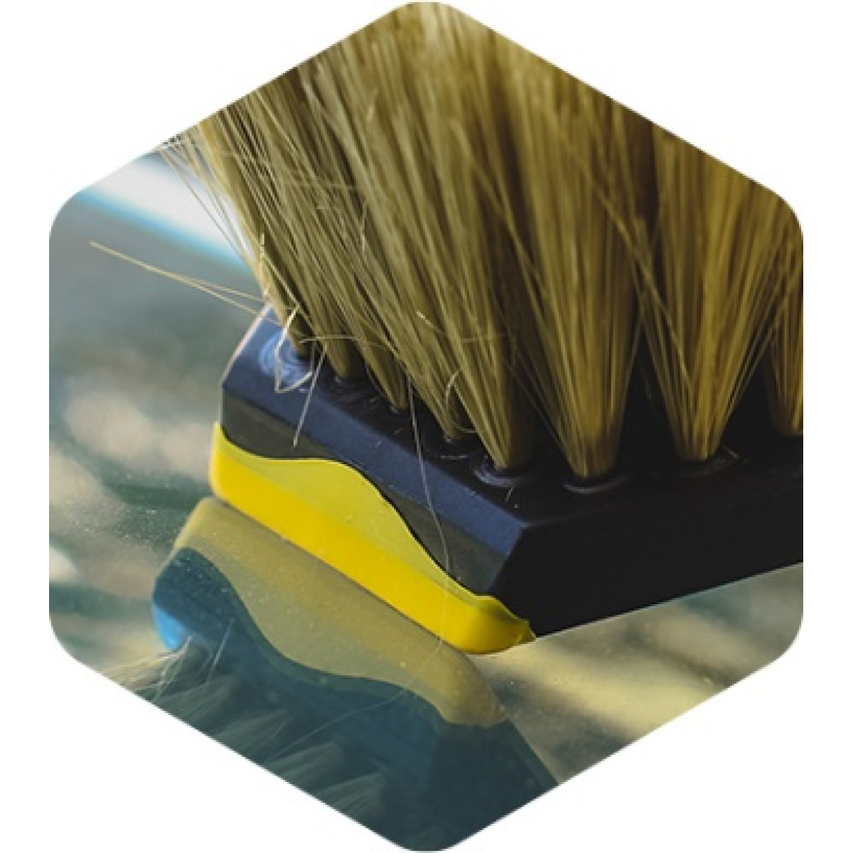Tihedad, pehmed, tugevad ja õigesti paigutatud polüesterharjased eemaldavad tõhusalt mustuse akendelt ja kerelt pinda kriimustamata – ohutu värvile.