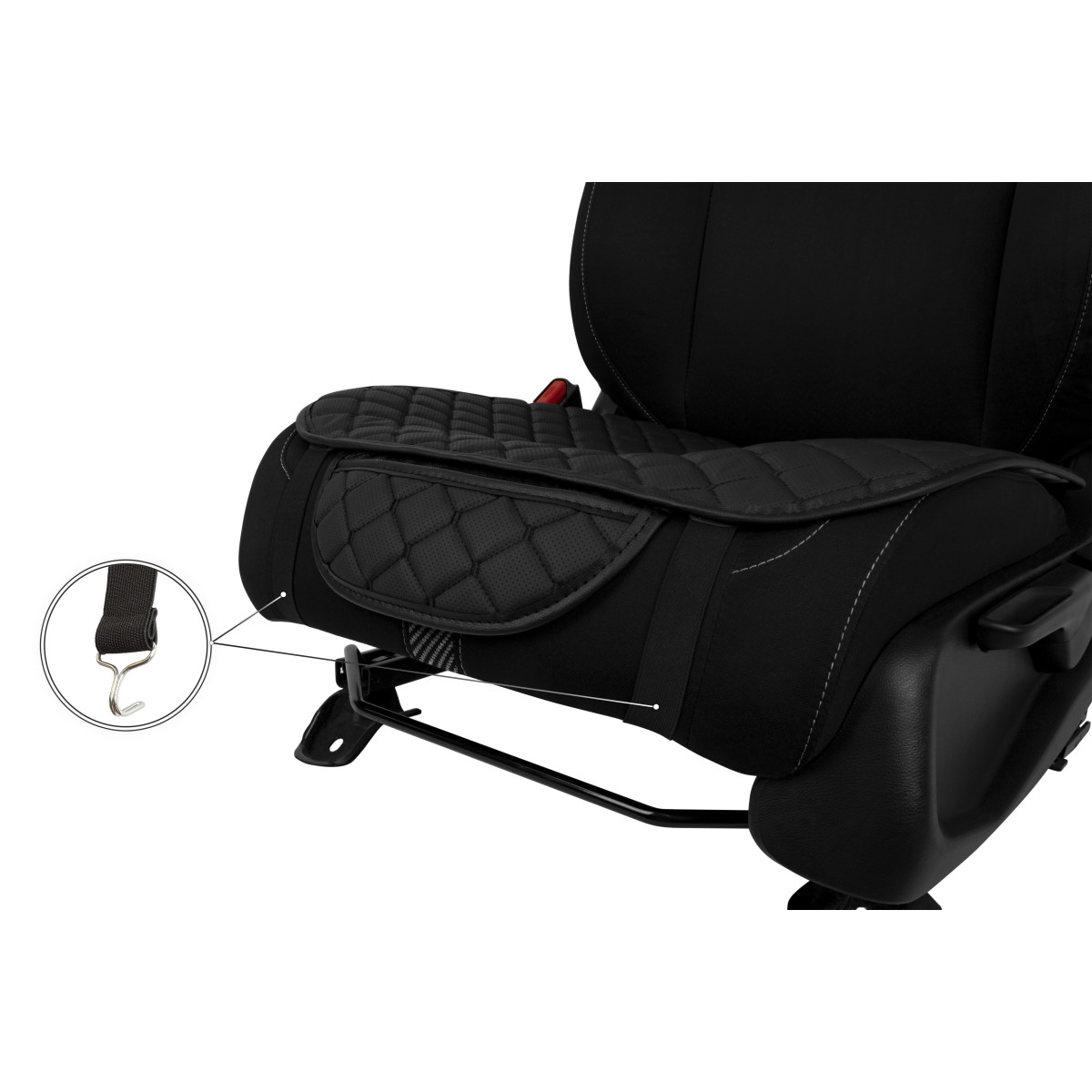 - Esikatted kinnitatakse istme alla ja taha plastist rõngaklambritega istmepadja ja seljatoe vahele