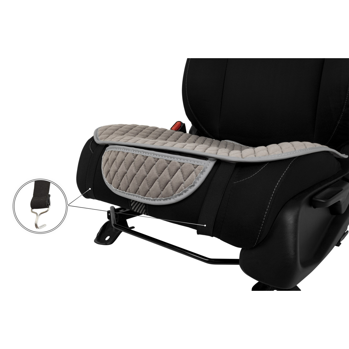 - Esiistme katted kinnitatakse istme alla ja taha plastist rõngasklippidega, mis asetatakse istmepadja ja seljatoe vahele