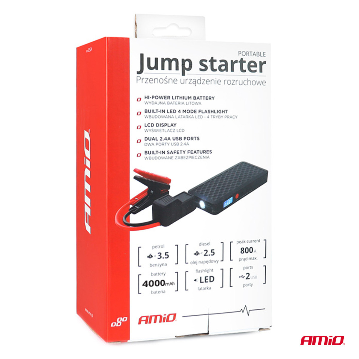 Kaasaskantav käivitusabi / varupatarei 12V 4Ah 800A SJ02 AMIO-02524