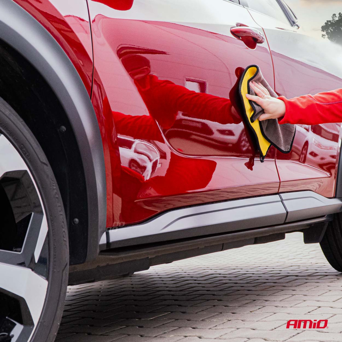- Salongipuhastuslapp – pehme ja õrn, sobib ideaalselt armatuurlaua, istmepolstri, keskkonsooli ja muude auto salongielementide puhastamiseks. Eemaldab tõhusalt tolmu, mustuse ja sõrmejäljed, jättes salongi puhtaks ja läikivaks.