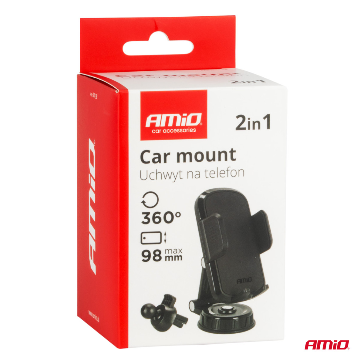 Telefonihoidik 2in1- õhutusavade/armatuurlaua külge, pöörleb 360°, AMIO-04138