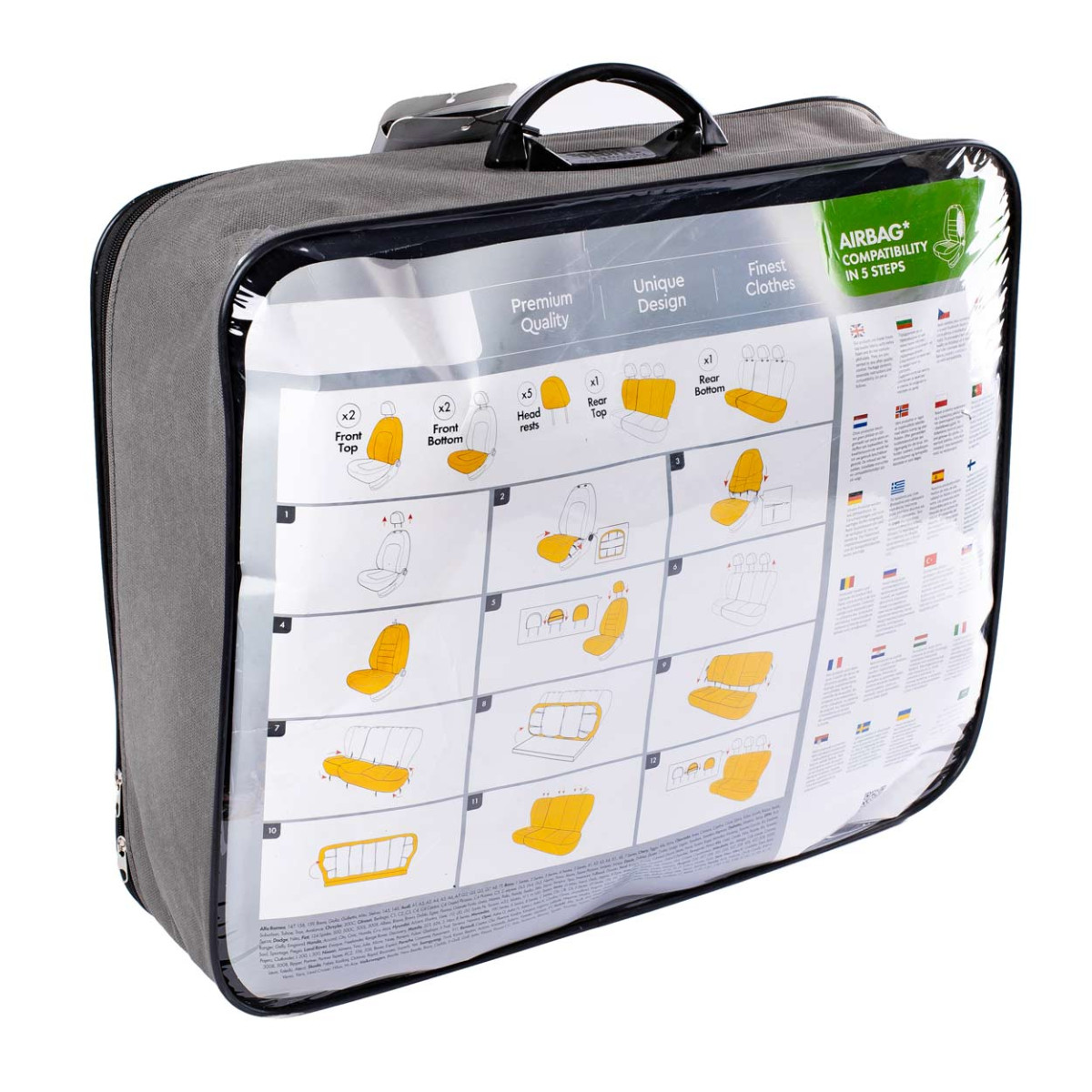 Kõik materjalid on lamineeritud polüuretaanvaht, mis hoiab ära katete libisemise istmetel. Katted katavad istmed täielikult, seega kaitsevad need neid ideaalselt mustuse eest, on vastupidavad ja kergesti puhastatavad. Moodsad disainid uuendavad auto salongi ja parandavad esteetikat.