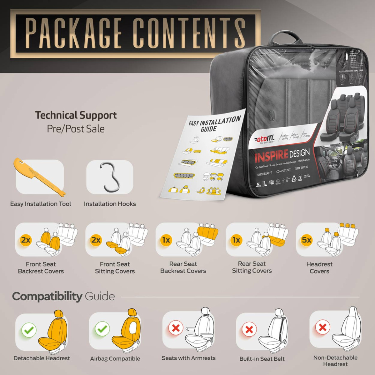Standardkatted on varustatud sertifitseeritud AIRBAG- õmblusega, mistõttu sobivad need autodele, millel on nii istmetes külgturvapadjad kui ka standardistmed. Tänu spetsiaalsele keermekonstruktsioonile ümbritsevad katted istmeid täielikult, häirimata turvapatjade tööd.